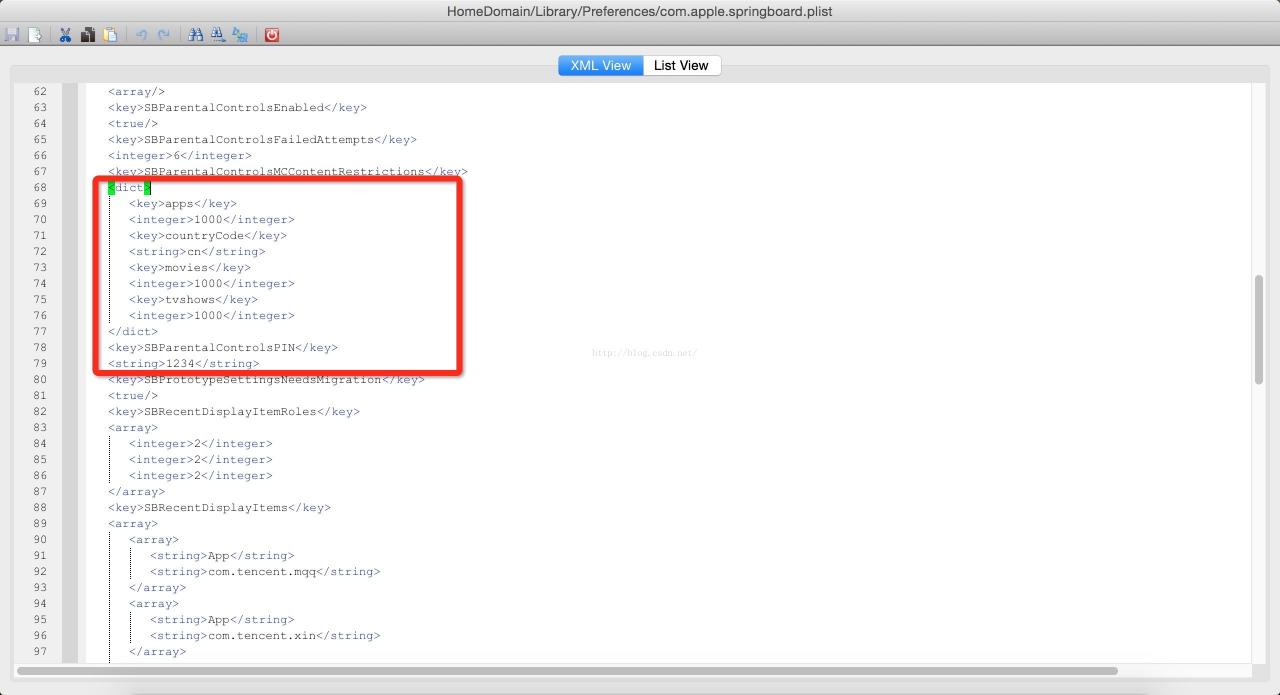 <key>SBParentalControlsPIN</key>
