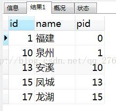 执行查询语句:select * from province where FIND_IN_SET(id,getParentList(17))