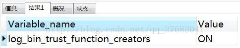 发现log_bin_trust_function_creators的值为OFF(这是默认值)