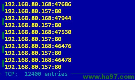 并发1000运行60秒后产生的TCP连接数12000多个: