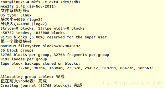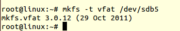 ● 用mkfs命令在上述刚刚创建的分区上创建(sdb1)ext4文件系统和(sdb5)vfat文件系统。
