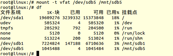 ● 把上述新创建的vfat分区挂载到/mnt/sdb5上。