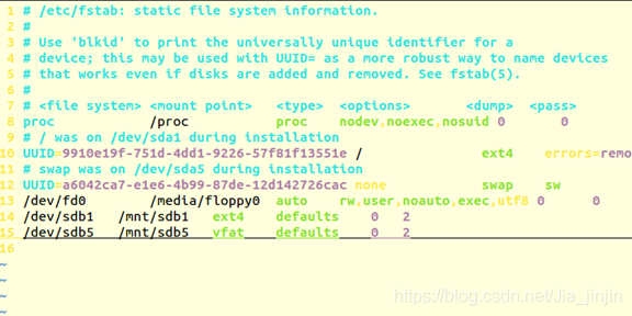 ● 编辑系统文件/etc/fstab文件,把上面两个分区加入此文件中。