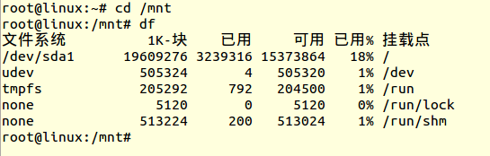 ● 利用mount命令列出挂载到系统上的分区,查看挂载是否成功。