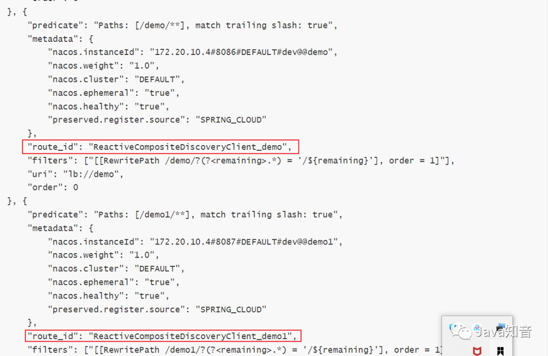 注:我利用http://localhost:9000/actuator/gateway/routes查看网关的路由信息,得到: