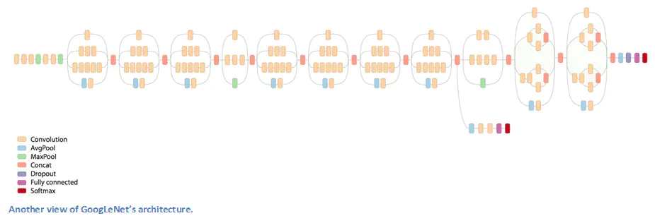通过inception module,GoogleNet成功地把CNN的层数增加到了超过100层!(如果把一个module当做一层的话,则是22层)。