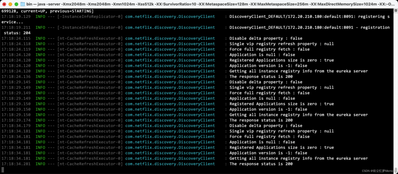 查看order服务的启动情况: