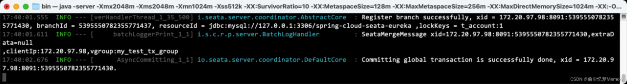 执行 seata-server-1.4.2\bin 目录下的 seata-server.bat (windows)/ seata-server.sh (linux或mac)启动seata服务 。