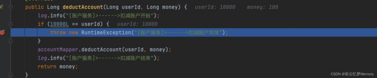 public Long deductAccount(Long userId, Long money) {