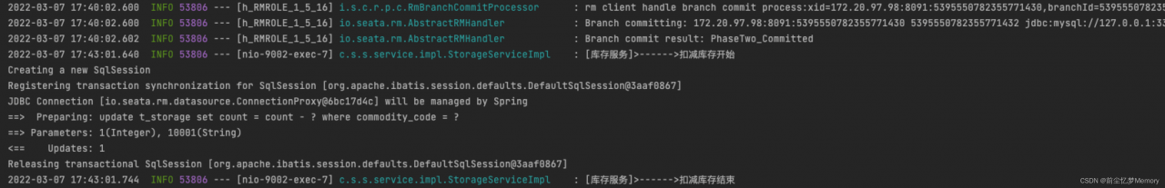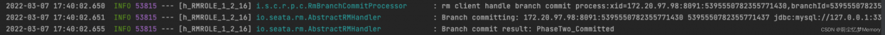 在Seata服务端,我们也能清楚的看到xid=172.20.97.98:8091:5395550782355771430这个全局事务的提交情况