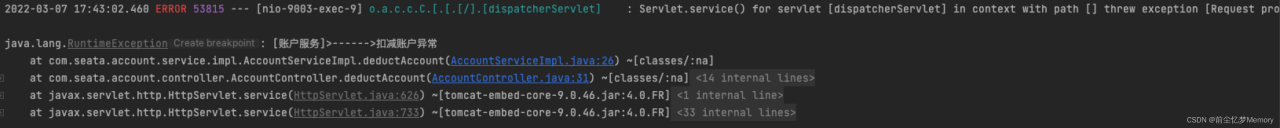 throw new RuntimeException("[账户服务]>------>扣减账户异常");