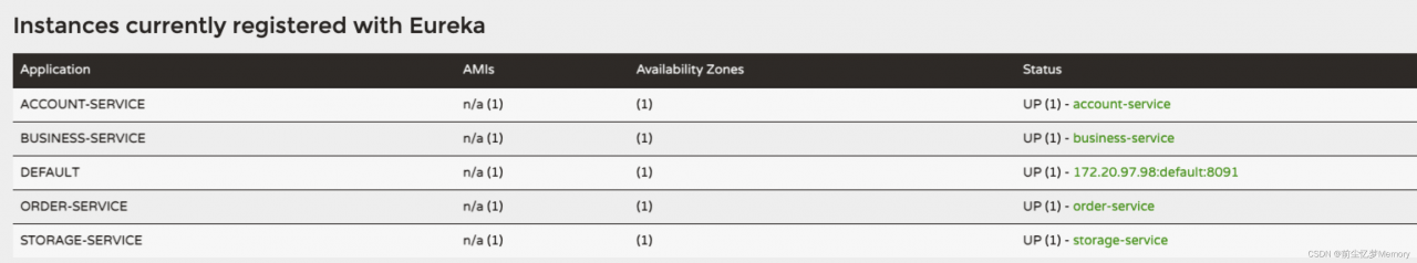 打开eureka注册中心,我们会清楚的看到各个服务的健康状态: