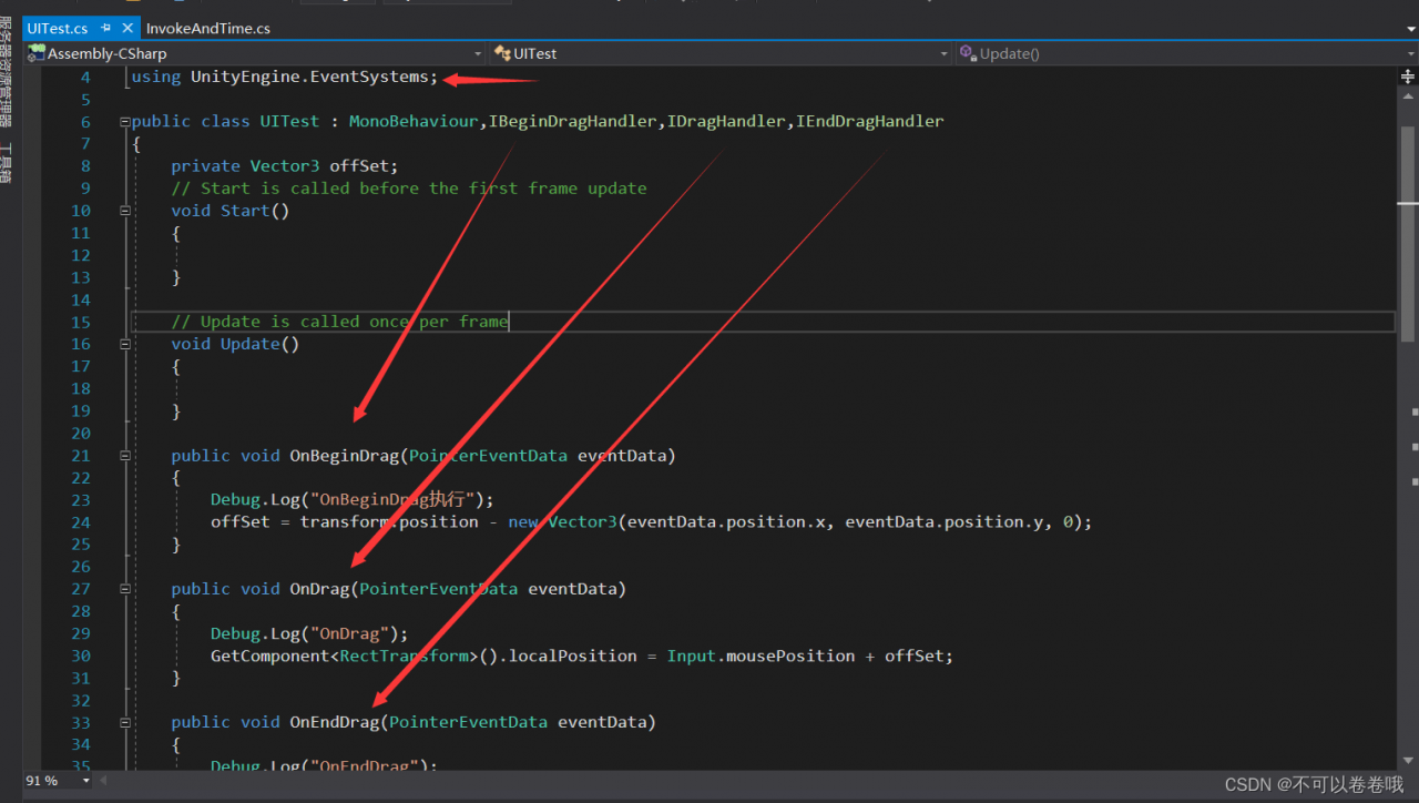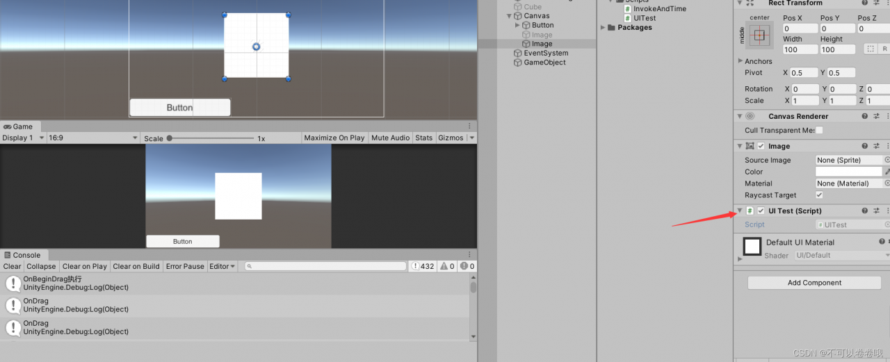 第二种:在物体身上挂脚本,然后脚本里面先引用using UnityEngine.EventSystems;