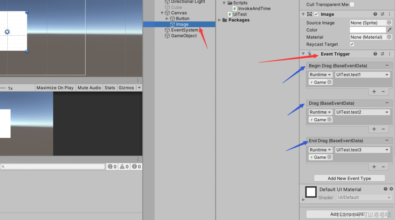 第一种:直接添加EventTrigger然后再具体添加事件的类型,调用不同的方法