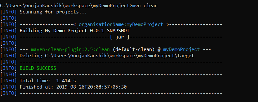 清理-它将清理目标文件夹,即先前版本的库,版本文件(war,tar或jar文件),报告,输出文件等保存在其中的文件夹。 在执行mvn -clean时,此目标文件夹将被删除。
