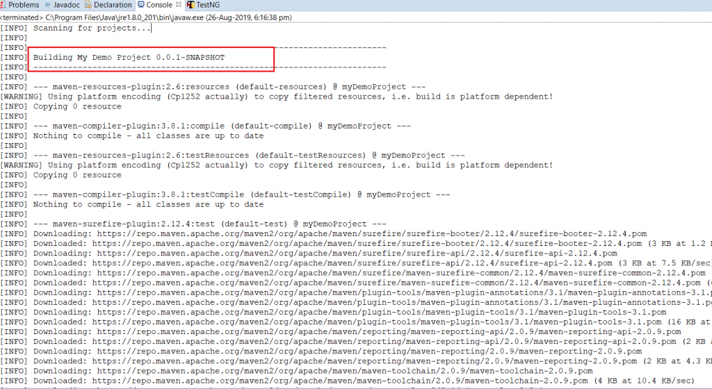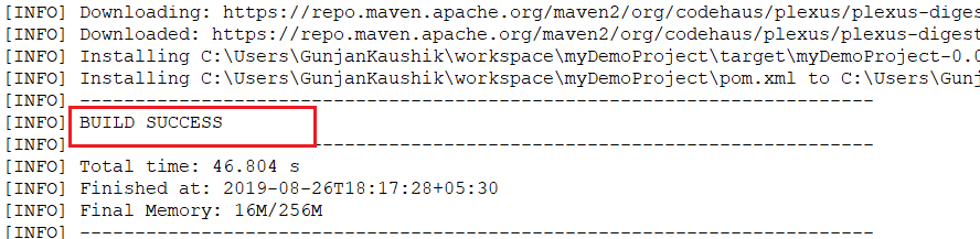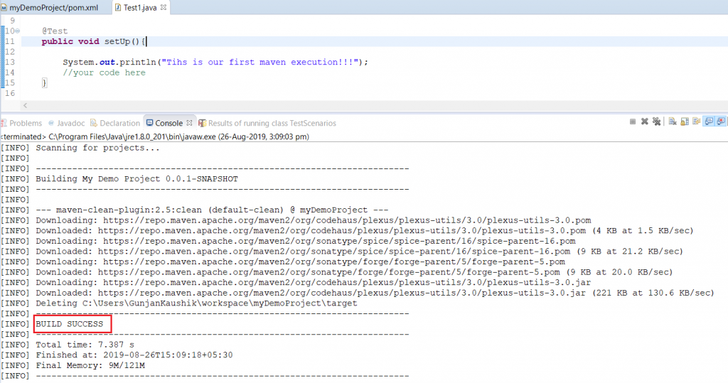 现在,就像在此Selenium Maven教程中对Maven Clean所做的一样,转到Maven安装,并观察构建安装的控制台输出:
