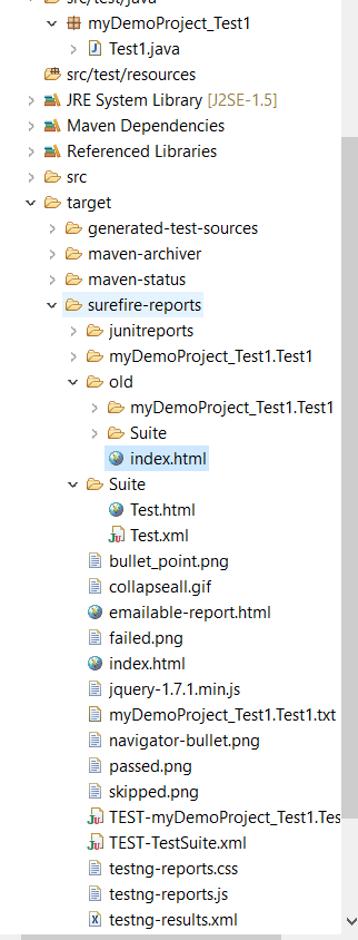 现在,您可以检查默认情况下生成的报告,并且可以通过在命令提示符下键入“ mvn test”来执行此套件,以类似的方式进行检查。