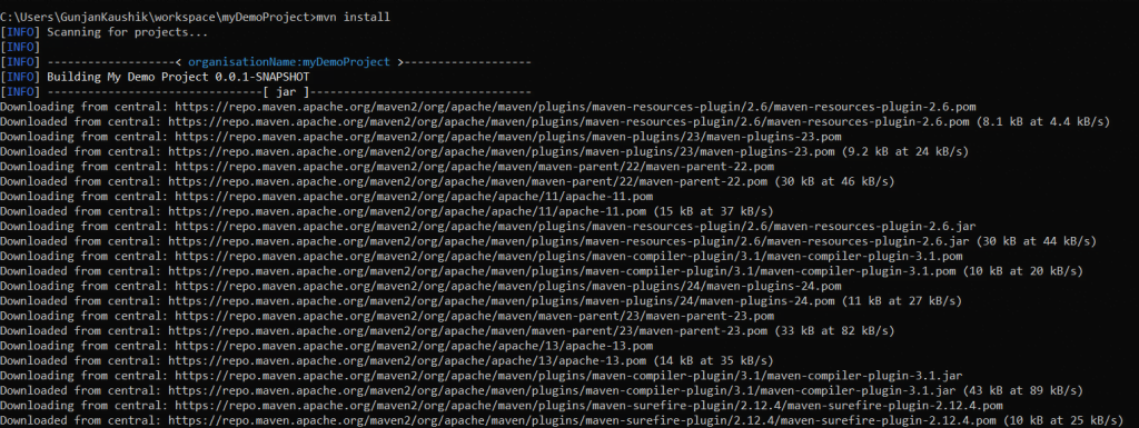 mvn原型:generate -DgroupId = demoProject -DartifactId = DemoMavenProject -DarchetypeArtifactId = Maven-archetype-quickstart -DinteractiveMode = false