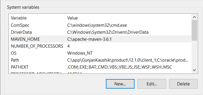 - 现在,您可以在“系统变量”下看到新创建的Maven变量。