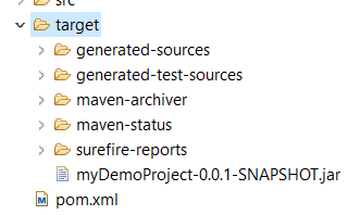 您可以在控制台输出中看到Maven安装程序也执行了测试。 要查看本地系统中已安装的目录,请刷新项目并查看生成的目录。 在下面的快照中,您可以看到由于Maven安装而生成的所有文件(由于这是一个简单的JAVA程序,因此也生成了jar文件)。 您可以直接共享此jar文件,以供其他人执行。