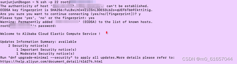 2、然后输入:ssh -p 端口号 服务器用户名@ip (例如ssh -p 22 root@127.0.0.1)