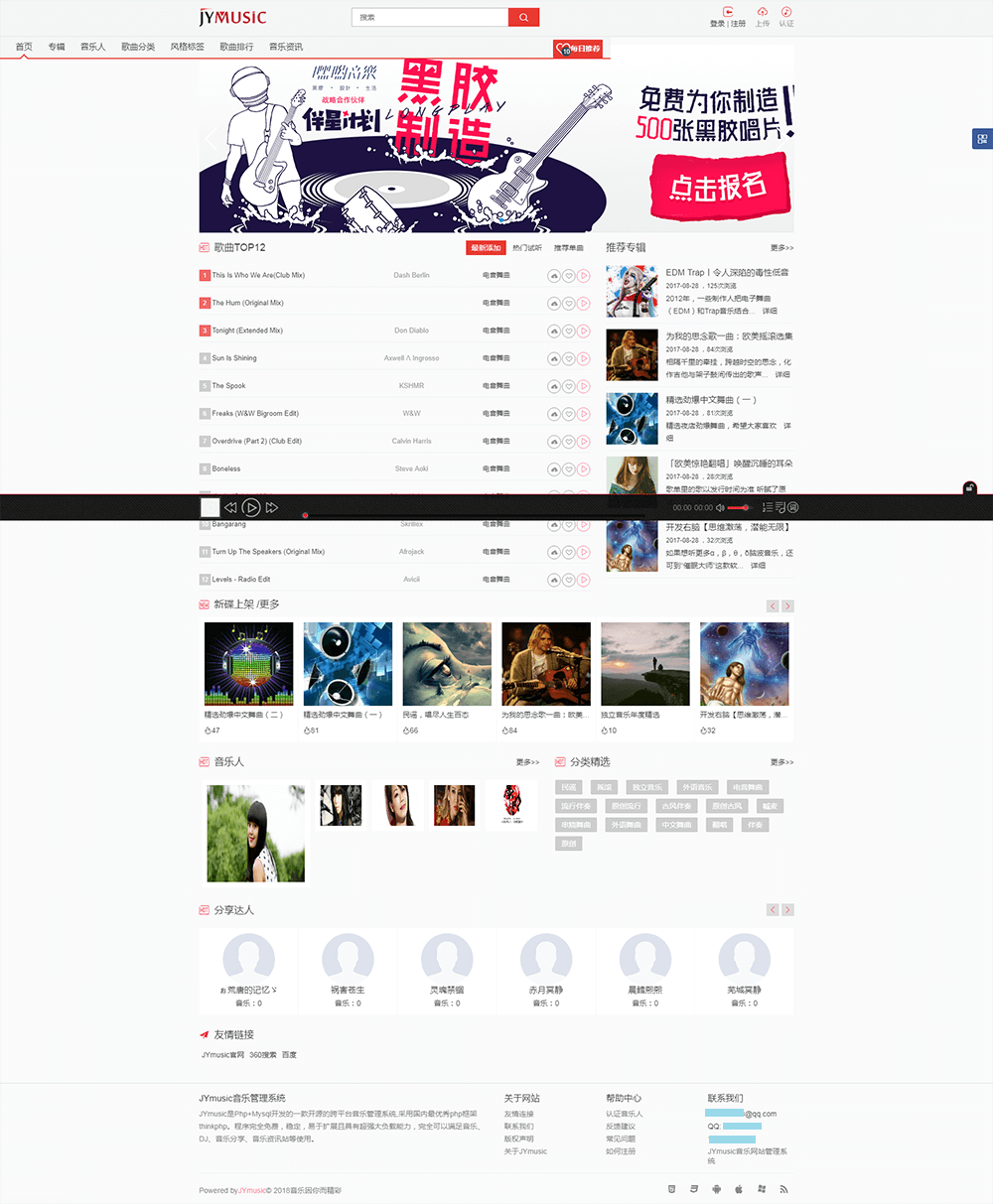 JYmusic是一款开源的跨平台音乐管理系统,基于php框架tninkphp开发,稳定、易于扩展、超强大负载能力,完全可以满足音乐、DJ、音乐分享、原创音乐、音乐资讯站等使用。