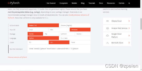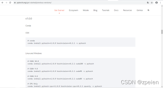conda install pytorch==1.0.0 torchvision==0.2.1 cuda90 -c pytorch也可以下载.whl文件进行安装。