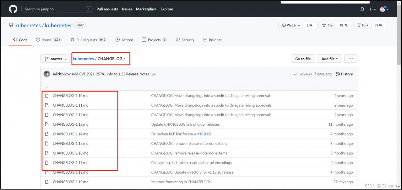 软件k8s的github地址:https://github.com/kubernetes/kubernetes,通过CHANGELOG,点击低版本的log,比如:17、18等,搜索:coredns、etcd等关键词,可以查看到当前k8s版本兼容的对应镜像版本。