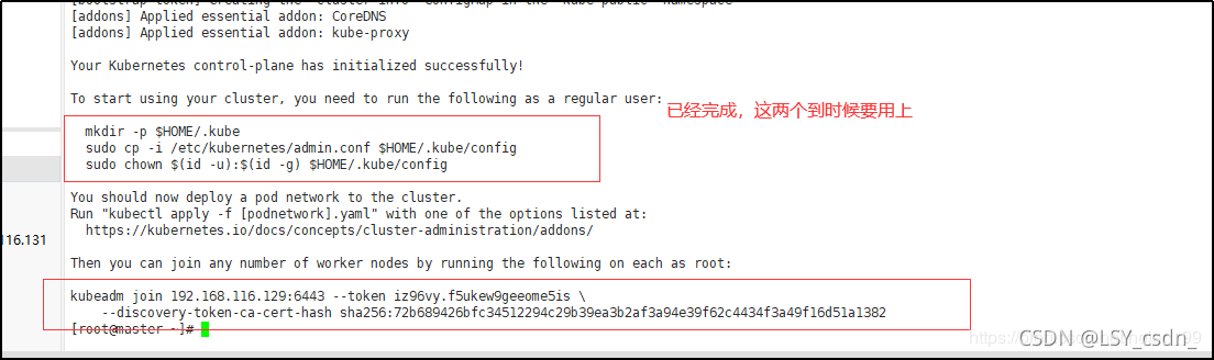 出现如下提示信息,表示k8s的master节点部署好了。