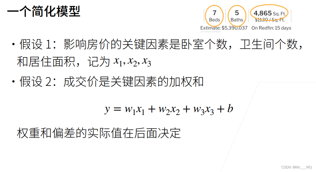 首先我们建立一个模型,这个模型是房价预测模型,以此模型简单介绍线性回归模型。