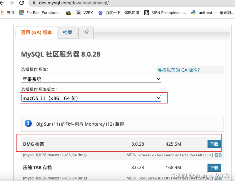 1.安装mysql数据库,下载地址(mac):MySQL :: Download MySQL Community Server