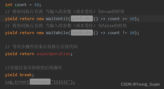 yield return new WaitUntil(() => count >= 10);