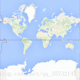 为了便于理解GIS系统中不同层级,使用不同的图片,下面使用google在线瓦片地图进行说明。最小层级0情况下,只用了一张256*256像素的图片表示整个地球平面: