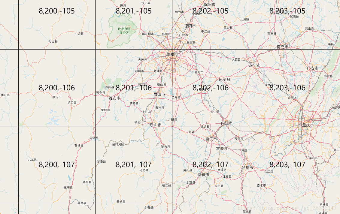 其次网格中有三个数字,这些数字就表示当前瓦片的坐标:
