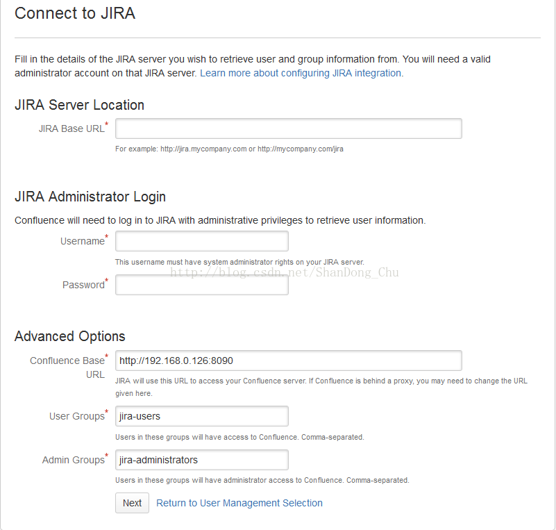 3、然后,在confluence中在配置用户的时候选择“connect to jira”