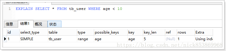 5. Using index:从只使用索引树中的信息而不需要进一步搜索读取实际的行来检索表中的列信息。