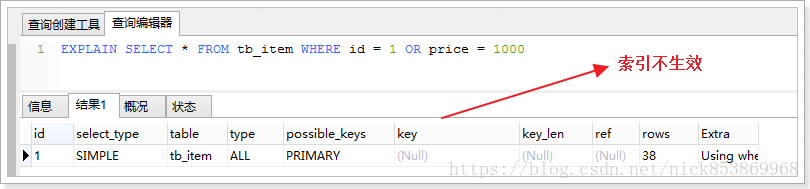 查询语句的查询条件中只有OR关键字,且OR前后的两个条件中的列都是索引时,索引才会生效,否则,索引不生效