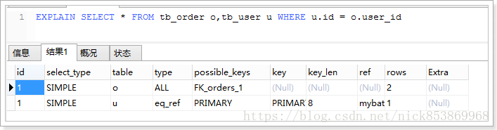 3.eq_ref:可以用于使用=比较索引的列