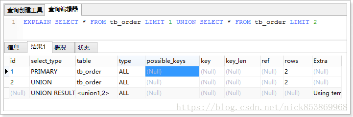 5.UNION RESULT:连接查询的结果