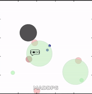 simple_tag.py (Predator-prey) | N | Y | Predator-prey environment. Good agents (green) are faster and want to avoid being hit by adversaries (red). Adversaries are slower and want to hit good agents. Obstacles (large black circles) block the way. |