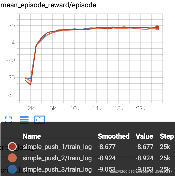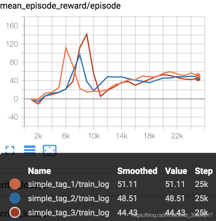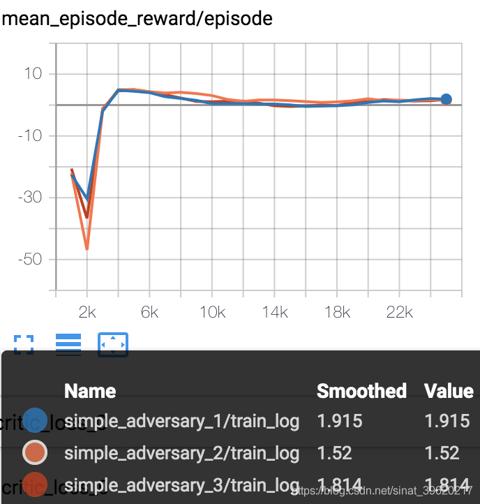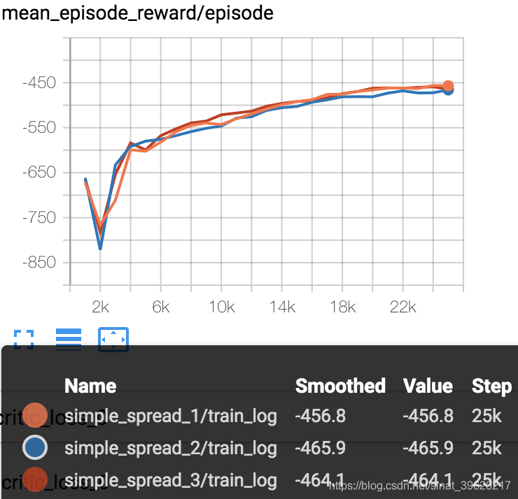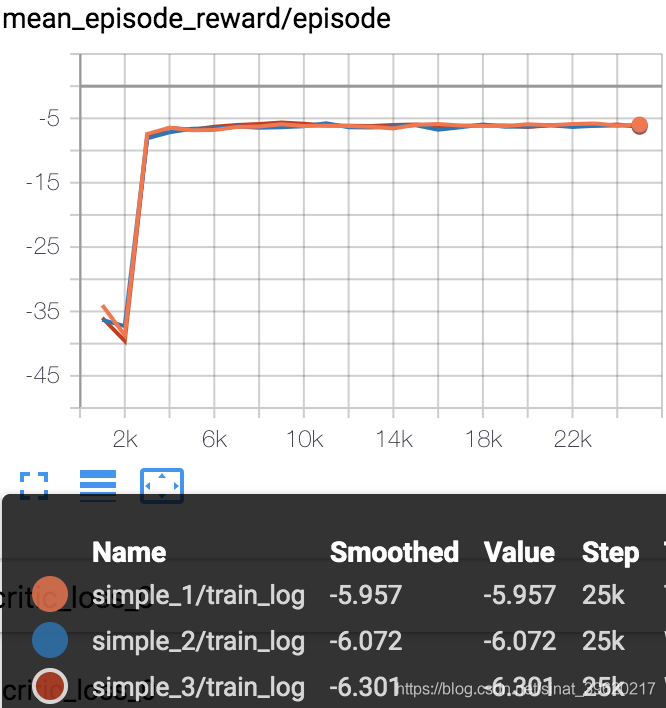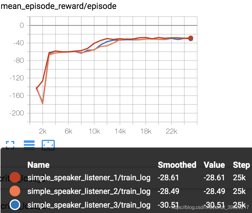 可以看到simple_speaker_listener跑出结果和图5基本一样收敛了