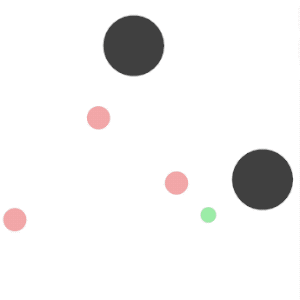 - 剩下的两个绿色大球是森林,绿色小球进入森林时,红色小球就无法获取绿色小球的位置;