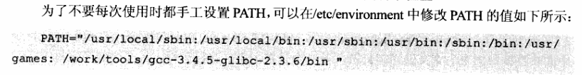 这个个人不是很认同,因为我这么操作后。reset ubuntu12.04的时候,Desktop会进不去,每次输入密码就重启。只能ssh登录进去。然后把/work/tools/gcc-3.4.5-glibc-2.3.6/bin这段删除后,重启才能进去。而且添加这段后,执行arm-linux-gcc仍然会提示找不到指令。