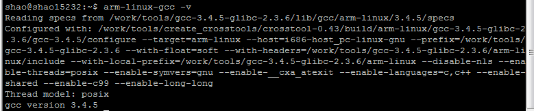然后再次尝试arm-linux-gcc -v OK 了。