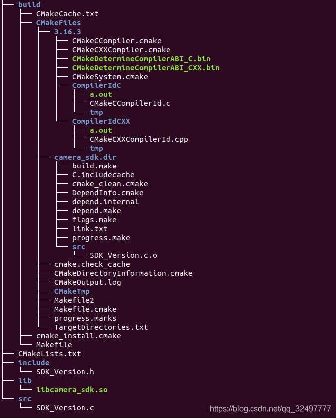 build文件夹用来存放cmake产生的而文件和make产生的文件。