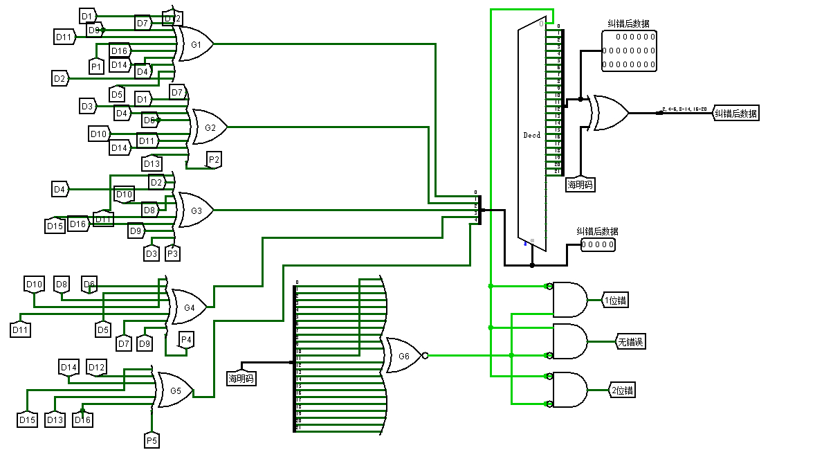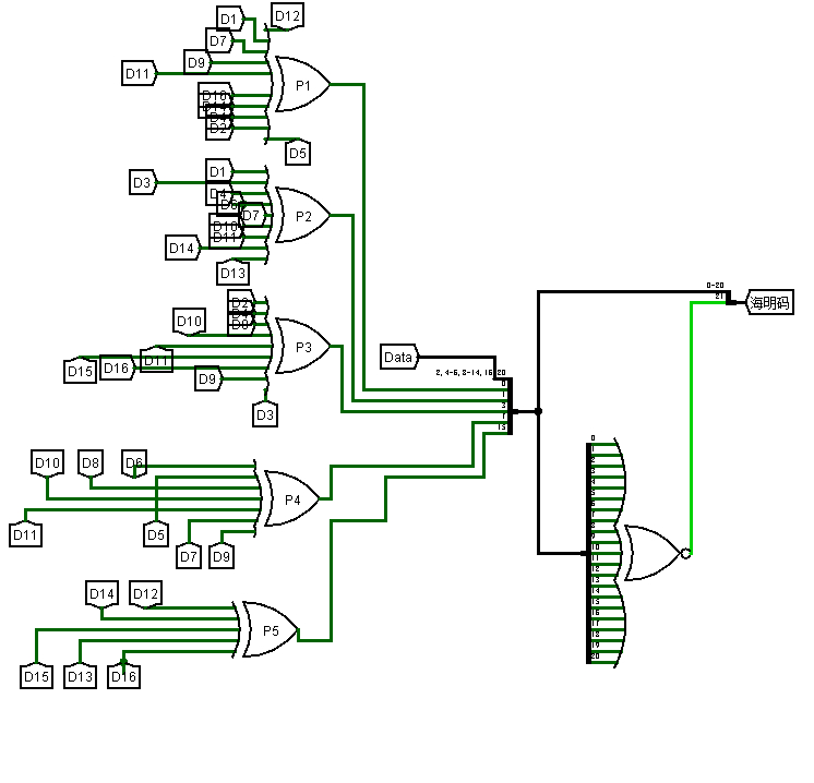 输出16位数据位,5位海明校验位,1位奇校验位(指的是所有数据位的异或再取反)