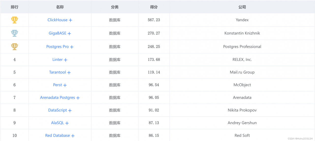 2022年7月俄罗斯数据库排行榜:ClickHouse雄踞榜首,GigaBASE摘得榜眼