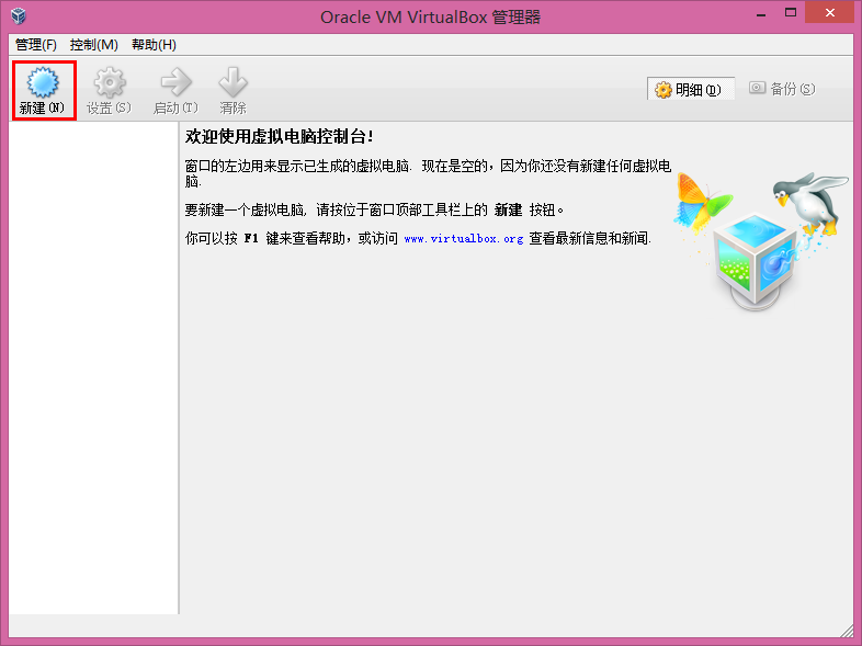 1.进入virtualbox管理界面,选择新建