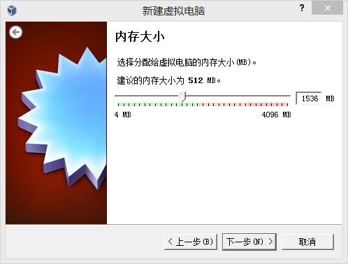3.配置虚拟机内存(内存优先选择在1-1.5G之间,太小不能加载XWindow界面,太大容易浪费本机系统内存),下一步