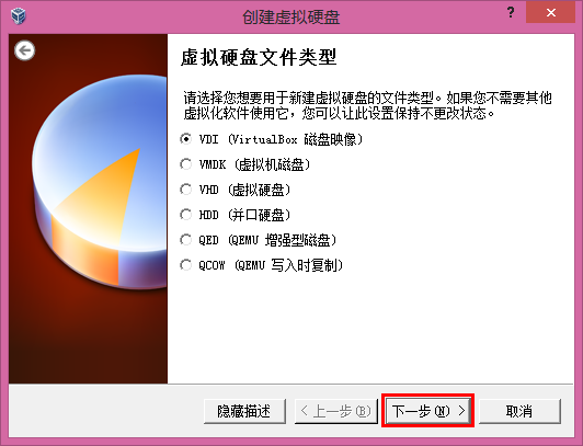 5.选择硬盘文件类型,默认即可,下一步